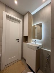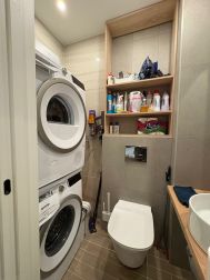 - Полная меблировка и техника: вся современная техника (стиральная и сушильная машины, ТВ, духовой шкаф, СВЧ-печь, посудомоечная машина, измельчитель отходов) остаётся новому владельцу.