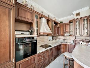 ID 47459. Видовая 5-комнатная квартира в кирпично-монолитном современном доме бизнес-класса на Карамышевской набережной с прекрасными панорамными видами в трех направлениях. Рационально спланированное пространство включает гостиную, кухню, столовую зону, 3 спальни, кабинет, ванную комнату, гостевой туалет, холл и теплую лоджию. В квартире выполнен качественный дизайн в классическом стиле, она полностью укомплектована всем необходимым для комфортного проживания. Высокие потолки и впечатляющие виды на красоты Серебряного бора. Огороженная территория с видеонаблюдением и охраной, детской площадкой, вместительной наземной парковкой.