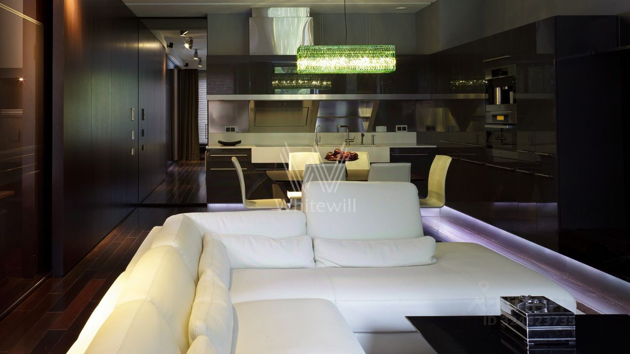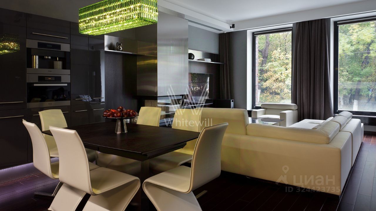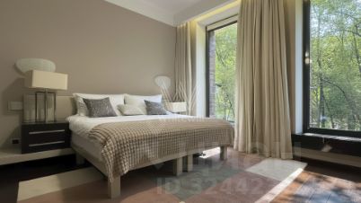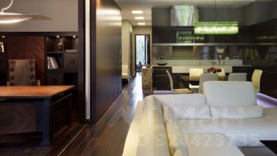 Квартира с двумя спальнями общей площадью 138 м² в комплексе "Одиннадцать Станиславского" на 2 этаже. Интерьер оформлен в современном стиле, на полу выложен керамогранит и паркет, подоконники отделаны натуральными мрамором. Квартира полностью меблирована и оснащена всем необходимым для комфортного проживания. Предусмотрено несколько уровней освещения, система "умный дом".