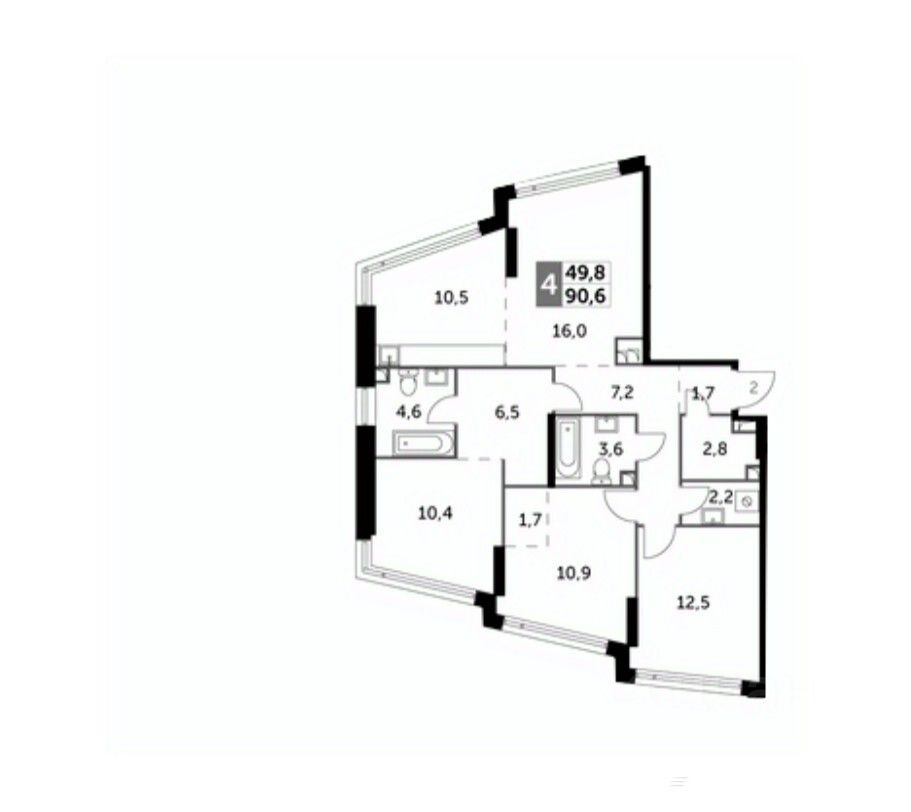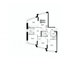 три санузла, три просторные комнаты и просторная кухня-гостинная.