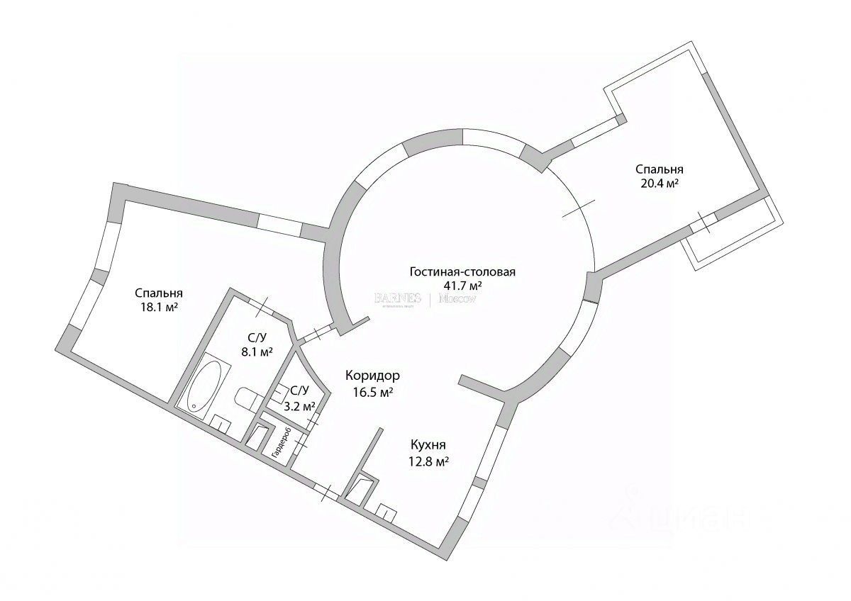Видовая 3-комнатная квартира площадью 120.8 кв.м. в жилом комплексе "Петровский Замок".