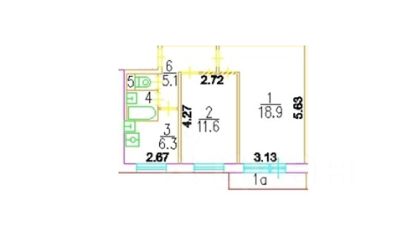 Планировка: прихожая, вправо совмещенный санузел с душевой кабиной и кухня. Прямо от входа - гостиная, справа - спальня. Комнаты изолированные, размеры 18,9 и 11,6 метров, балкон есть, застеклен.
