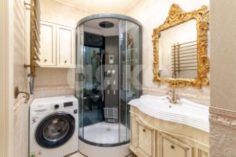 * Два совмещенных санузла: один с удобной душевой кабиной, второй — с полноразмерной ванной. Из санузла есть прямой выход в гардеробную — продуманная система хранения.