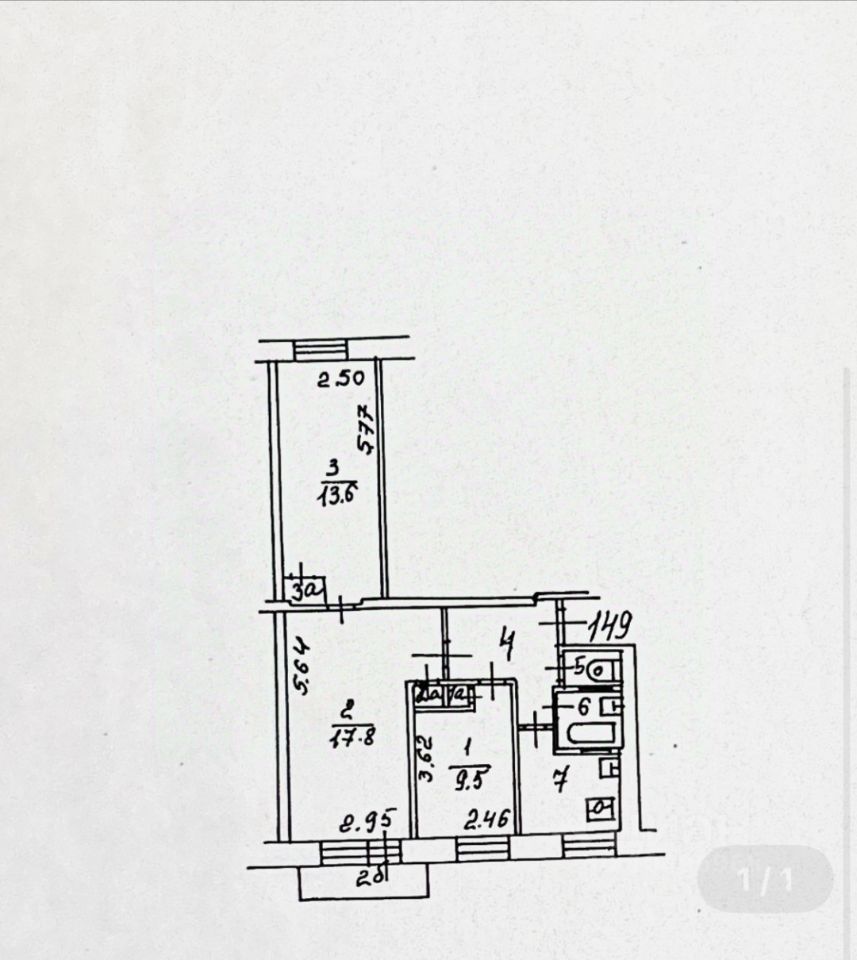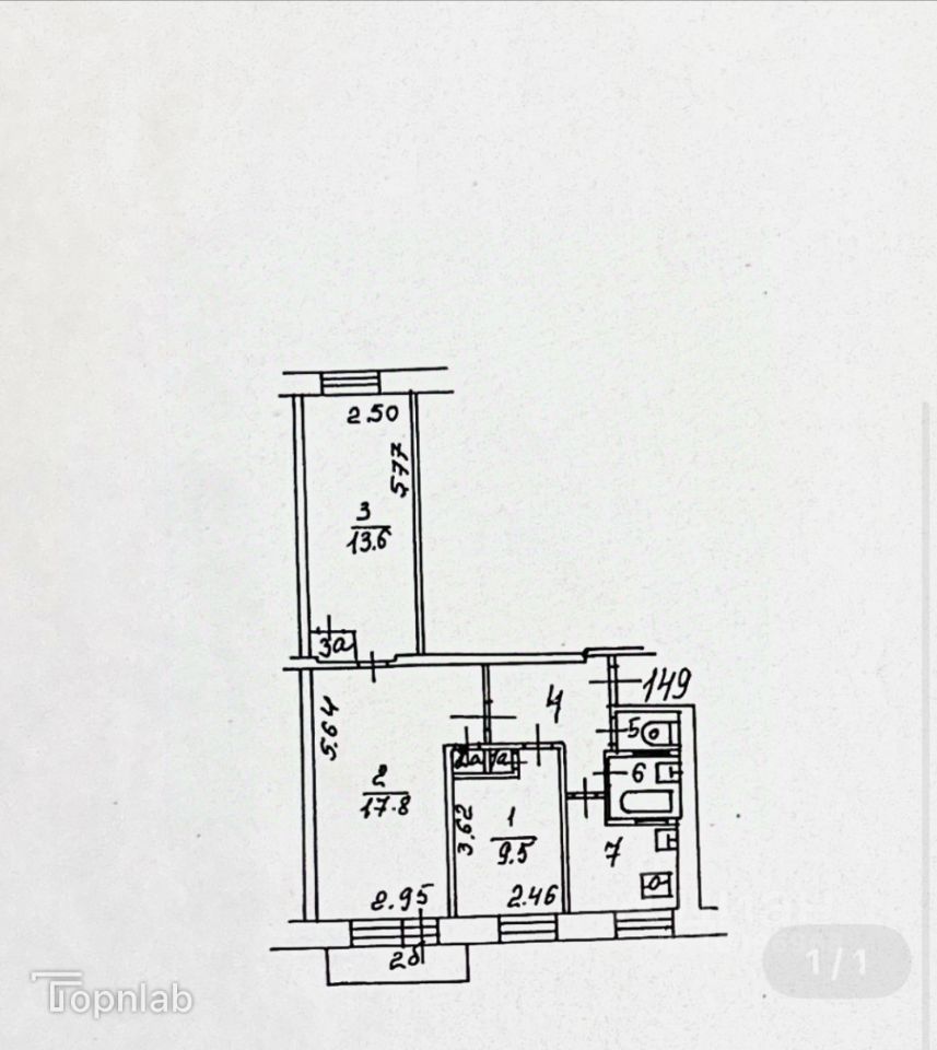 Комнаты: смежно-изолированные (9,5 + 17,8 + 13,6 м²)