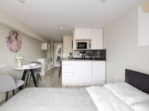 Квартира обладает евроремонтом, что позволяет сразу заселиться и наслаждаться комфортом без дополнительных вложений. Жилая площадь составляет 10,9 кв. м, а кухня — 5 кв. м, что оптимально для молодых специалистов или студентов.