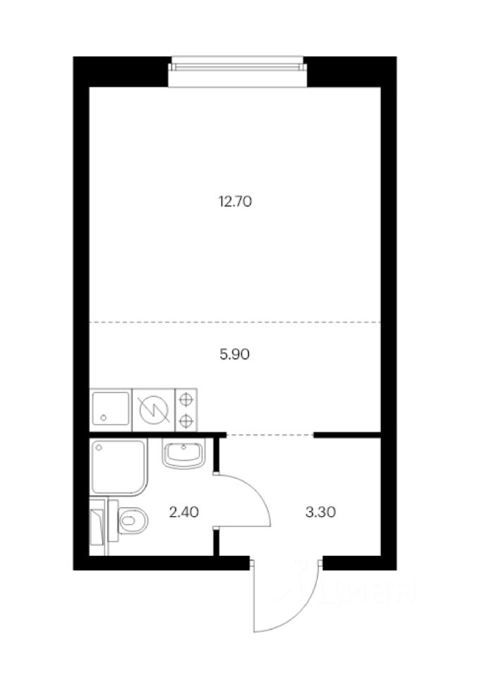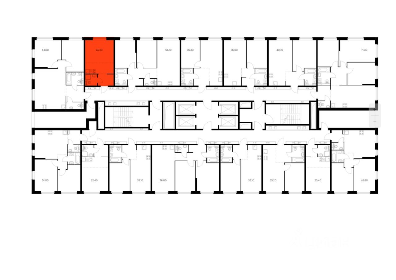 Студия 24,30 кв.м. на 21 этаже, окна во двор.
