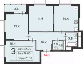 Продажа квартира, 3-я Прядильная улица, земельный участок 10, этаж 4, кв. 146