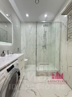 Совмещенный санузел с душевой кабиной, зеркало с умной подсветкой, полотенцесушитель, новая стиральная машинка.