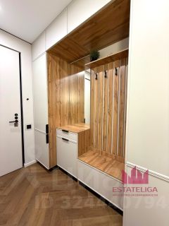 Установлена кровать с ортопедическим матрасом, напротив широкоугольный Smart телевизор. В прихожей большой шкаф-гардеробная и зеркало с подсветкой.