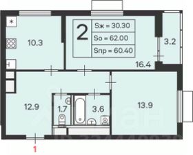 2-комн. кв., 60,4 кв.м