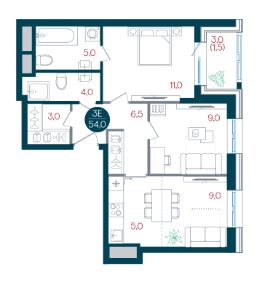 Общая площадь54 м²