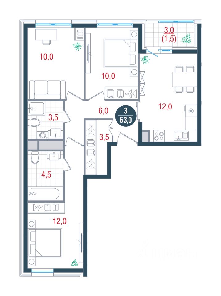Продаётся 2-комнатная квартира в строящемся доме (Корпус 2), срок сдачи: I-кв. 2026, общей площадью 63 кв.м., на 10 этаже. Новый жилой комплекс "Кавказский бульвар 51/2" от Концерна Русич