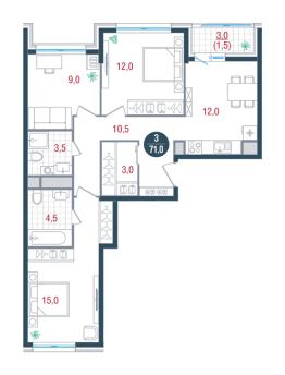 Продаётся 3-комнатная квартира в строящемся доме (Корпус 2), срок сдачи: I-кв. 2026, общей площадью 71 кв.м., на 16 этаже. Новый жилой комплекс "Кавказский бульвар 51/2" от Концерна Русич