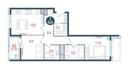 52 м²