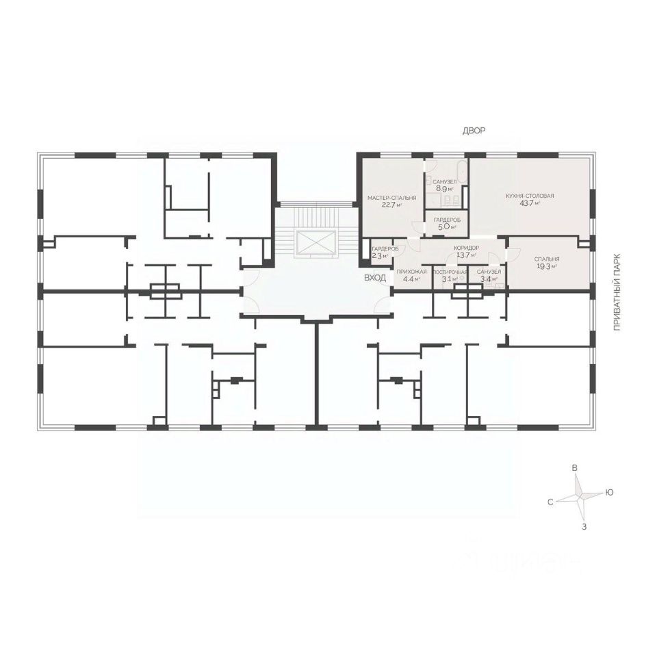 * Приватный парк с лаунж-зонами и др.
