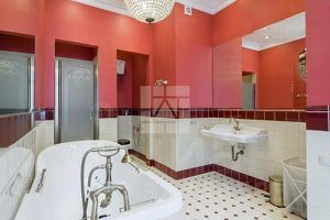 - На первом этаже с высотой потолков 4 метра расположены: 4 спальни, каждая со своей ванной комнатой, 4 гардеробные, подсобное помещение и 2 балкона.