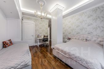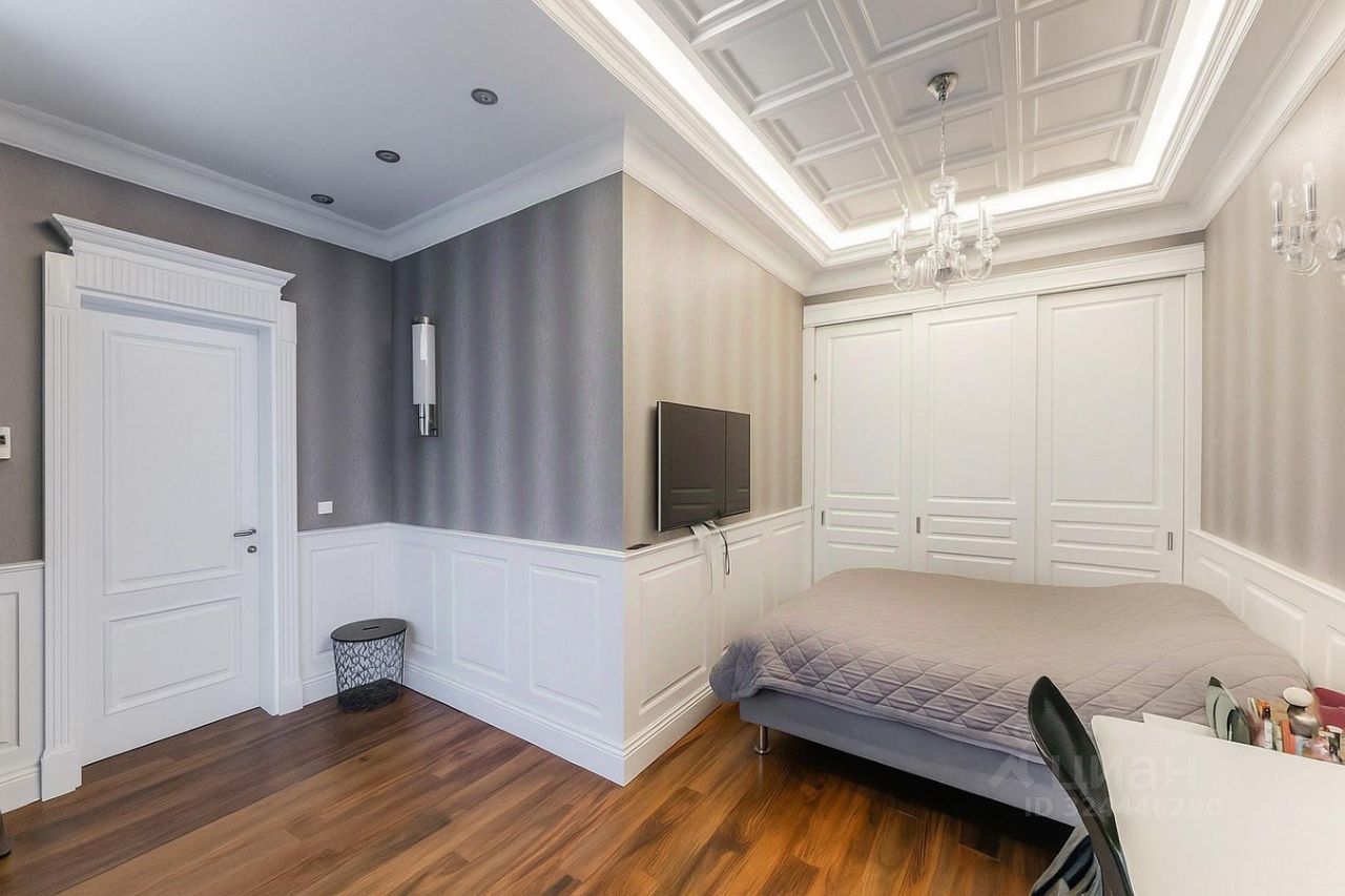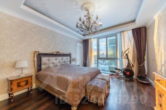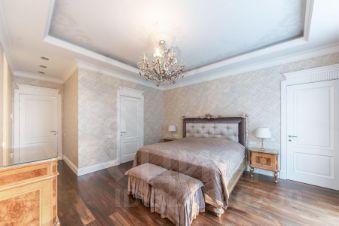 Мастер спальня имеет приватную гардеробную комнату, свою ванную комнату с ванной, душем, Огромная комфортная кровать king size выполнена по индивидуальному проекту.