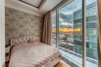 В квартире установлена система канального кондиционирования, электро шторы, дополнительная система очистки воды. Для Вас в квартире останется вся мебель, техника, текстиль, люстры, бра и предметы декора от мировых итальянских и американских брендов, натуральные материалы, дизайнерские аксессуары.