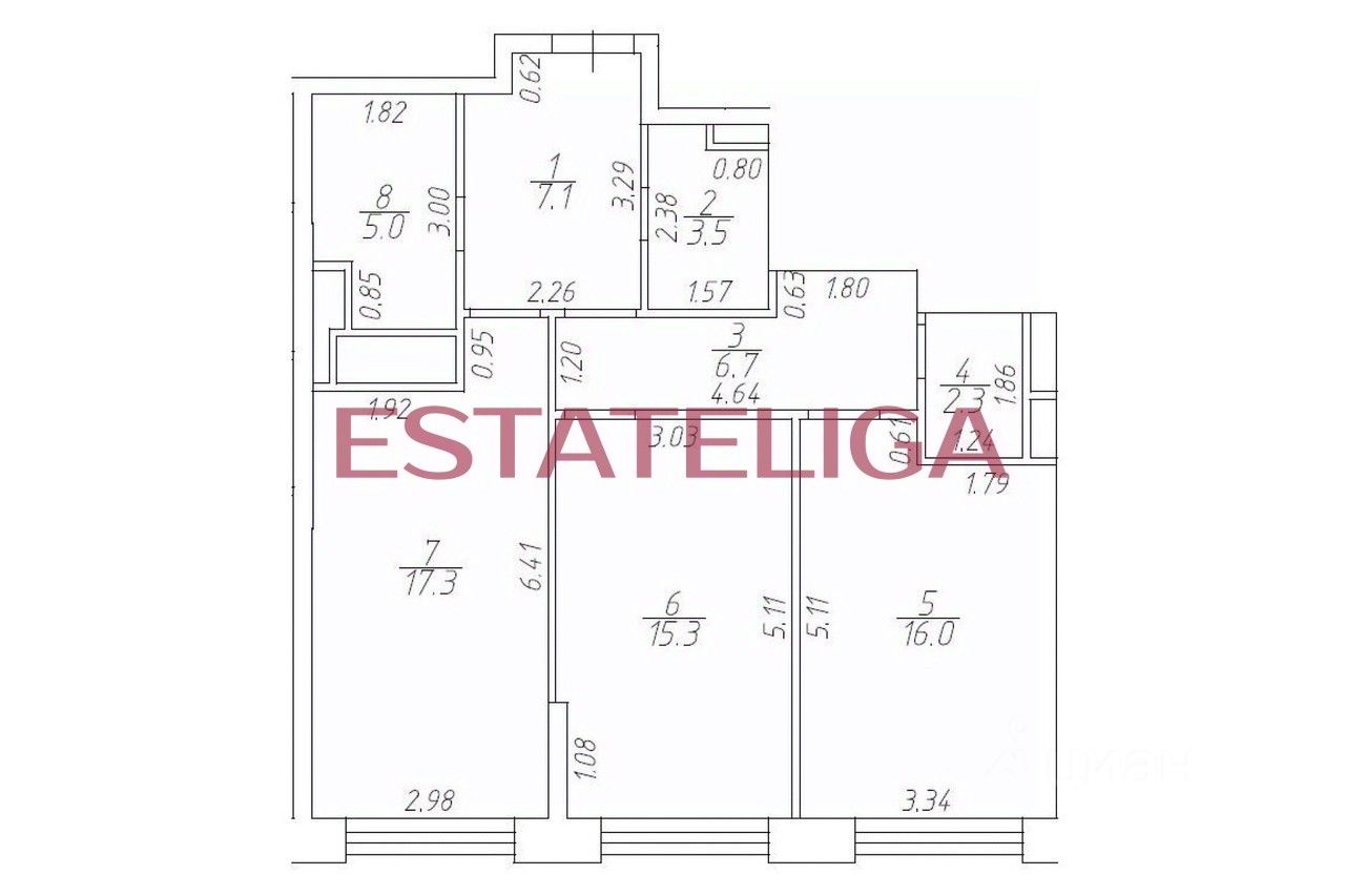 Планировка квартиры выполнена в формате евро-три: кухня-гостиная, изолированная мастер-спальня с гардеробной нишей и личным санузлом с душем, детская комната/кабинет, санузел с душем, гардеробная комната, просторный холл с вместительным гардеробным шкафом.