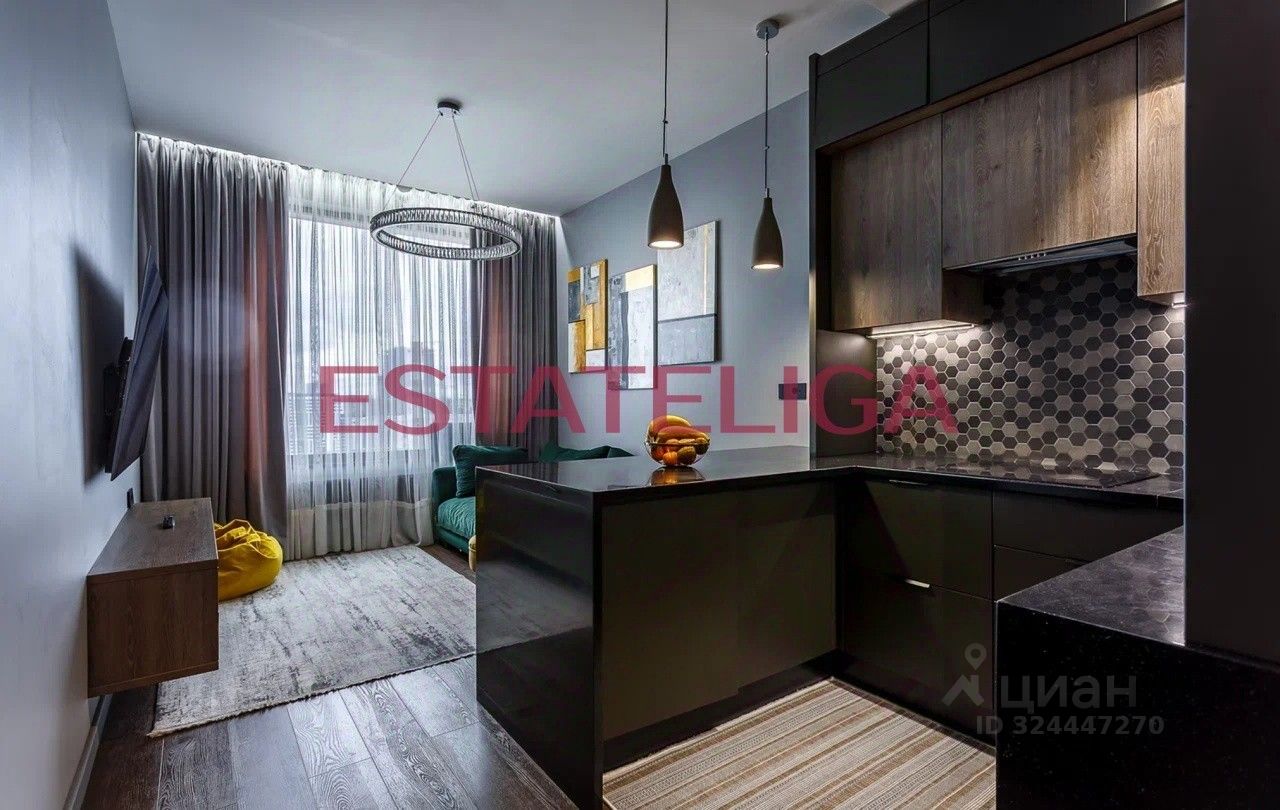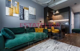 В квартире выполнен ремонт с использованием премиальных материалов, которые прослужат еще много лет. Ремонт делали для себя! Дизайнерская обстановка, дорогая качественная мебель. В каждой зоне оборудованы места для хранения. Кухонная зона плавно перетекает в гостиную, где расположилась ТВ-зона.