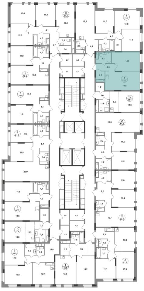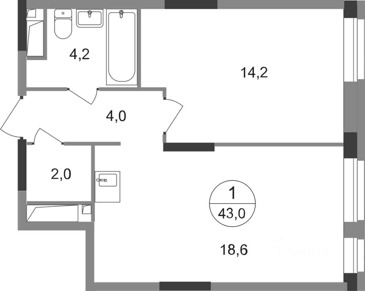 Общая площадь квартиры - 43 кв. м, этаж 6 из 19.