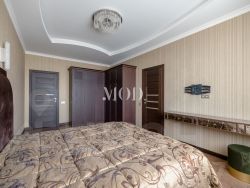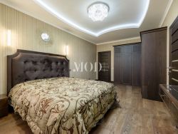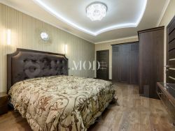 В квартире просторная гостиная, кухня, спальня,две спальни для детей, с панорамным видом на город, просторная гардеробная, два сан узла.