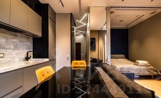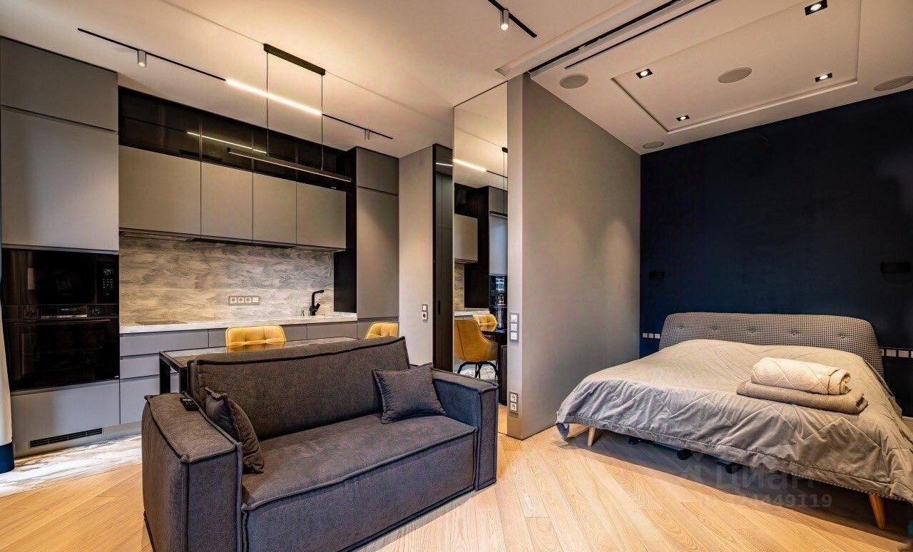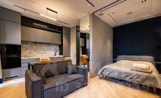 Просторная студия 37,6 кв. м. с авторским евроремонтом, выполненным по индивидуальному дизайн-проекту. Здесь продумана каждая деталь. Пространство зонировано на уютную спальную зону, просторную гостиную и функциональную кухню с современной техникой известных брендов (холодильник, варочная панель, духовой шкаф, вытяжка). Вся мебель и техника остаются новому владельцу — вы можете заехать с одним чемоданом.