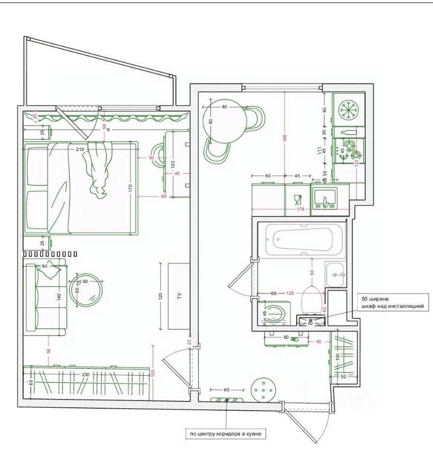 Продуманная планировка: светлая и изолированная зона спальни с двуспальной кроватью, современная гостиная с раскладывающимся диваном и рабочей зоной — идеально для уютных вечеров и встреч с друзьями. Дизайнерский санузел с полноценной ванной 170 см воплощает комфорт и эстетику.