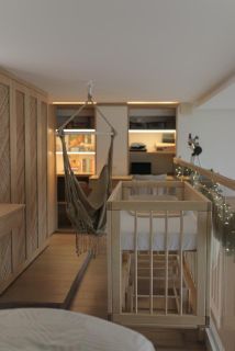 Евро-планировка, выполненная по авторскому дизайн-проекту. Потолки 4,2 метра — как в пентхаусе, что позволило добавить, в виде второго уровеня в квартире, дополнительных 15,5 м² стиля.