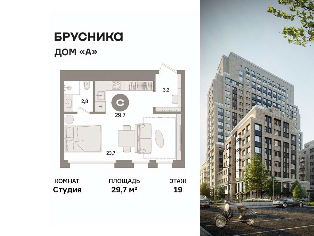 Студия в Доме "А". Особенности планировки: без отделки, вид во двор.