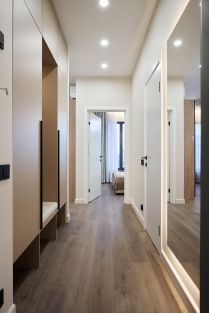 Монолитный дом, корпус 2, 20 этажей. Два пассажирских и один грузовой лифт. На этаже — всего восемь квартир. Входная группа с зоной ожидания, колясочной и лапомойкой. Закрытая территория, качественная отделка холлов.