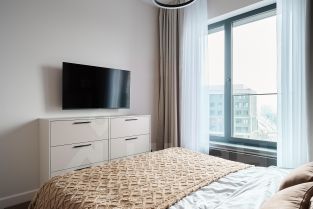 По всей квартире выполнена шумо- и гидроизоляция, есть датчики протечек. В каждой комнате — кондиционер и телевизор. Продажа полностью укомплектованной квартиры — можно сразу заезжать.