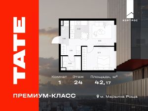 TATE - премиальный жилой комплекс, вдохновленный эстетикой современного искусства. Две башни TATE - образцы архитектурного минимализма, триумф функциональной простоты и отсутствия вычурности. Трехуровневое благоустройство от авторов столичного "Музеона", SPA и фитнес только для резидентов, а также панорамный лаунж на высоте 140 метров, откуда открывается впечатляющий вид на вечернюю Москву. Важной особенностью проекта является продуманная инфраструктура. На территории TATE будут расположены кафе и рестораны, где ранним утром можно насладиться горячей чашечкой кофе, а вечер провести за ужином в тихой расслабляющей атмосфере на открытой веранде. После рабочего дня непременно стоит расслабиться в SPA, расположенном на территории ЖК. Для любителей спорта предусмотрен фитнес-центр с бассейном. Для тех, кто ценит искусство на территории ЖК будет действовать арт пространство со сменной экспозицией и лаунж с панорамным видом на 39 этаже. Внутренний двор превращен в тихое зеленое пространство с арт-объектами, прогулочными аллеями и уютными зонами отдыха. Здесь приятно проводить время с семьей, встречать друзей и просто наслаждаться состоянием покоя. TATE - это новый уровень жизни рядом с ЦАО: • 5 минут пешком до метро Марьина роща; • 15 минут пешком до парков "Сокольники"и "Останкино"; • Сады и школы в шаговой доступности; • 10-15 минут на автомобиле до центра Москвы и Цветного бульвара, 20 минут до Москва-Сити. Архитектура, комфорт и вдохновение - все, чтобы каждый Ваш день начинался красиво.