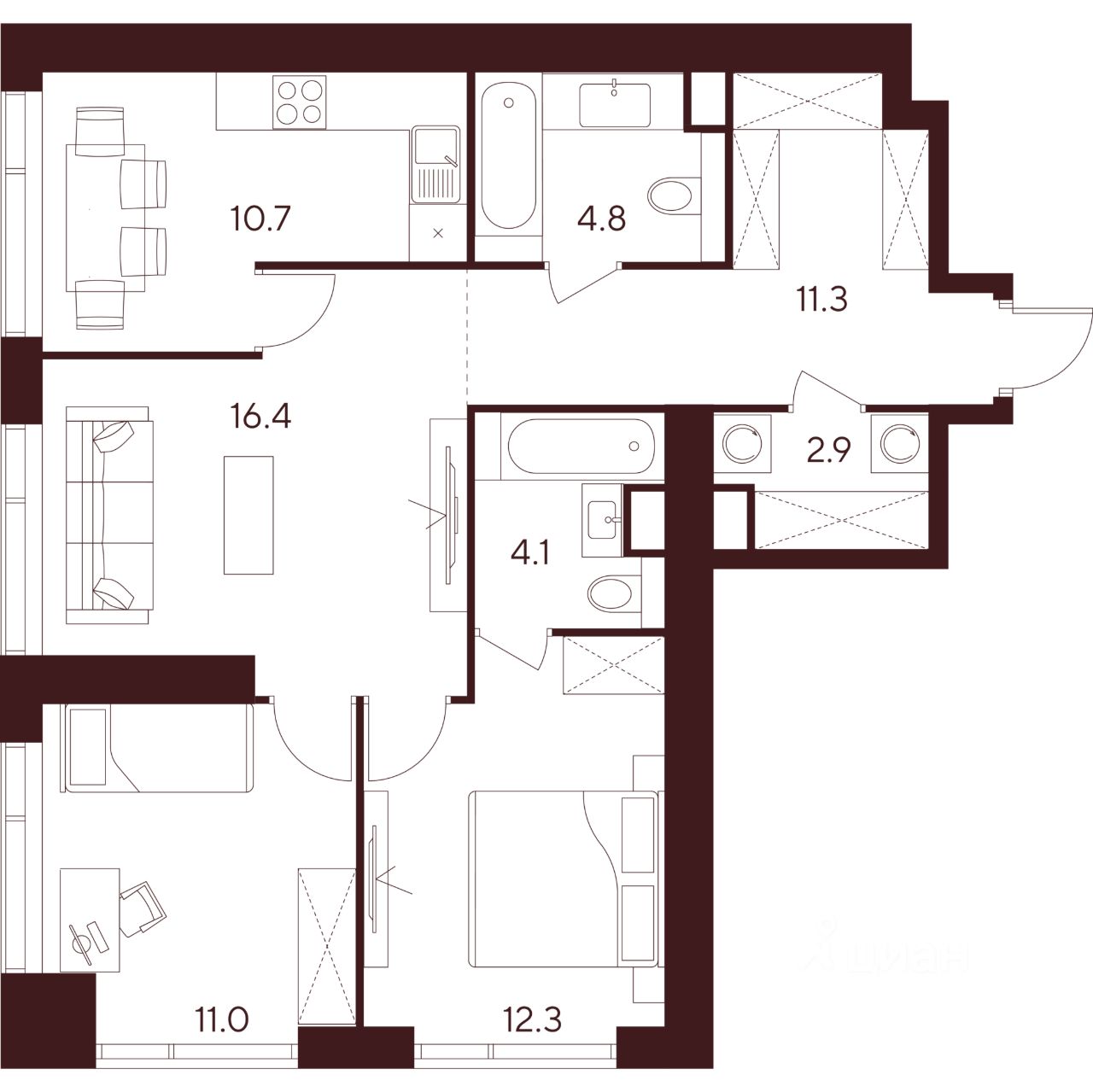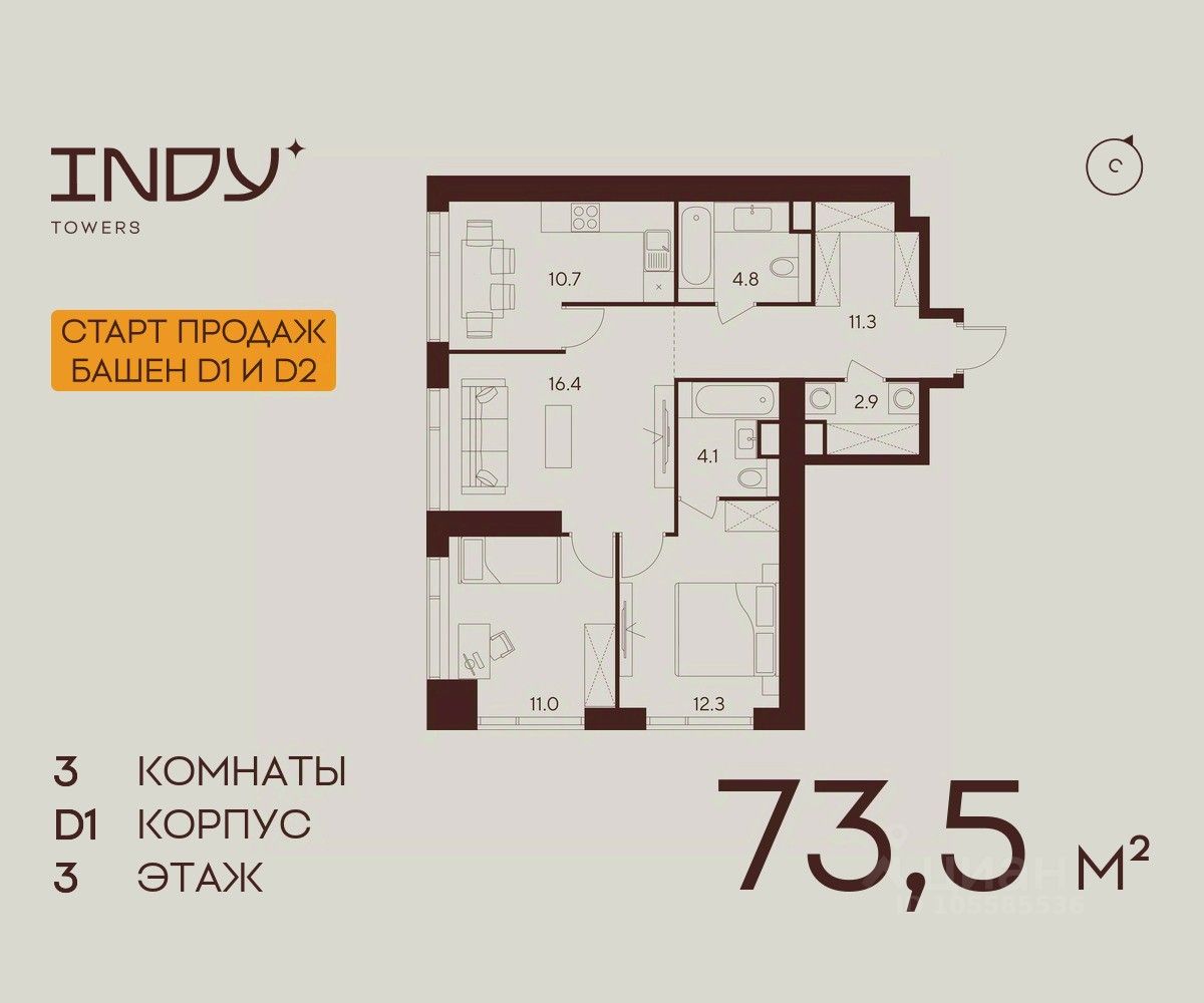 Продается просторная 3-комнатная квартира на 3 этаже жилого комплекса Indy Towers. Срок сдачи: 3 кв. 2029 г.