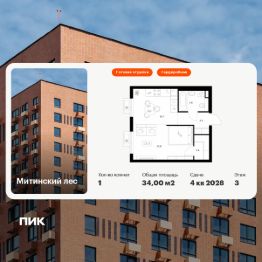 Продаётся 1-комн. квартира площадью 34 кв.м на 3 этаже 27 этажного дома (Корпус 14, Секция 5) проекта ПИК Митинский лес. Светлый просторный подъезд на уровне земли, функциональная планировка, большие окна, c отделкой.