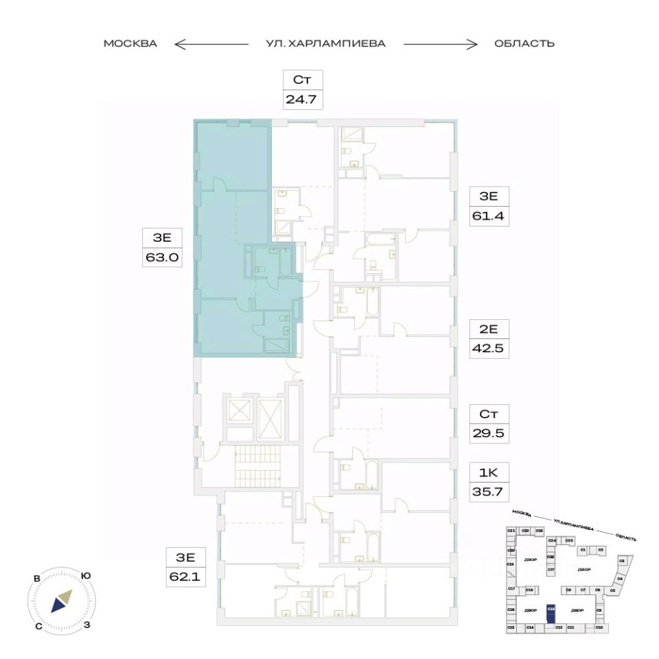 ЖК "Детали" | 3-комнатная квартира, 63.00 м², 5-й этаж.