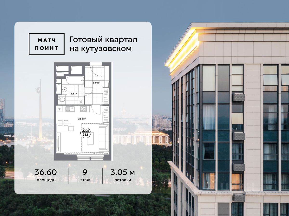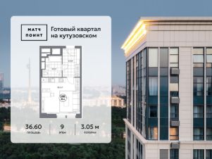 В премиальном квартале "Матч Поинт" представлены апартаменты-студия 36,6 м² на 9 этаже.