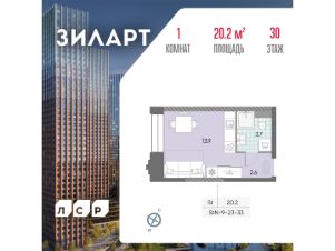 Продаётся квартира-студия в доме ЗИЛАРТ СПАРК общей площадью 20.2 кв. метров на 30 этаже.