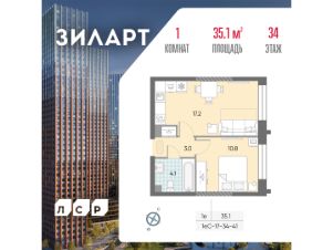 Продаётся 1-комнатная квартира в доме ЗИЛАРТ СПАРК общей площадью 35.1 кв. метров на 34 этаже.