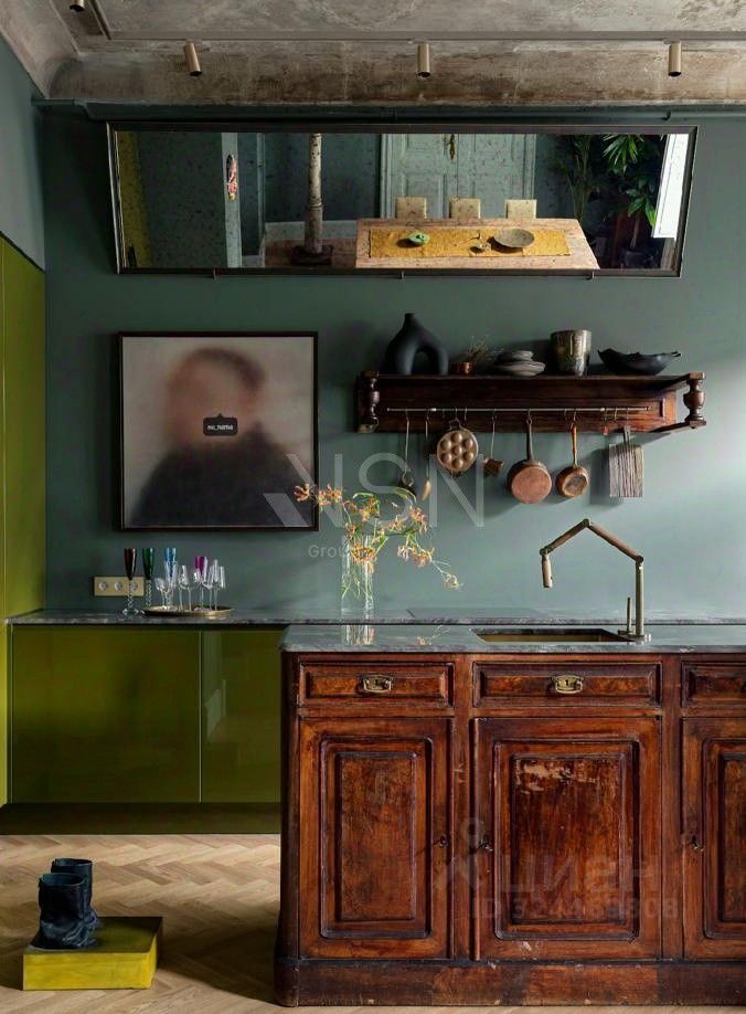 Интерьер сочетает коллекционные элементы, восстановленные вручную, с современным комфортом.