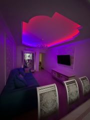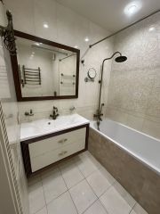 Вся плитка Испания и Италия, 2-х уровненный потолок, карнизы Orac Decor, полы паркет из массива Дуба, доска, шумоизоляция пола, Двери Дверной Лидер, все люстры Bohemia Crystal.