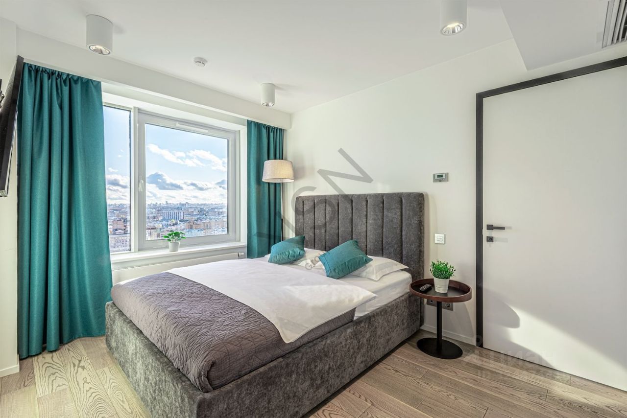 Две спальни с полностью оборудованными сан узлами, встроенные шкафы, гардеробная, балкон.