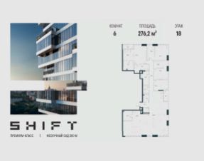 6-к квартира в премиальном комплексе SHIFT на 18-м этаже в 18 этажном здании. Общая площадь 276.2 кв. м.