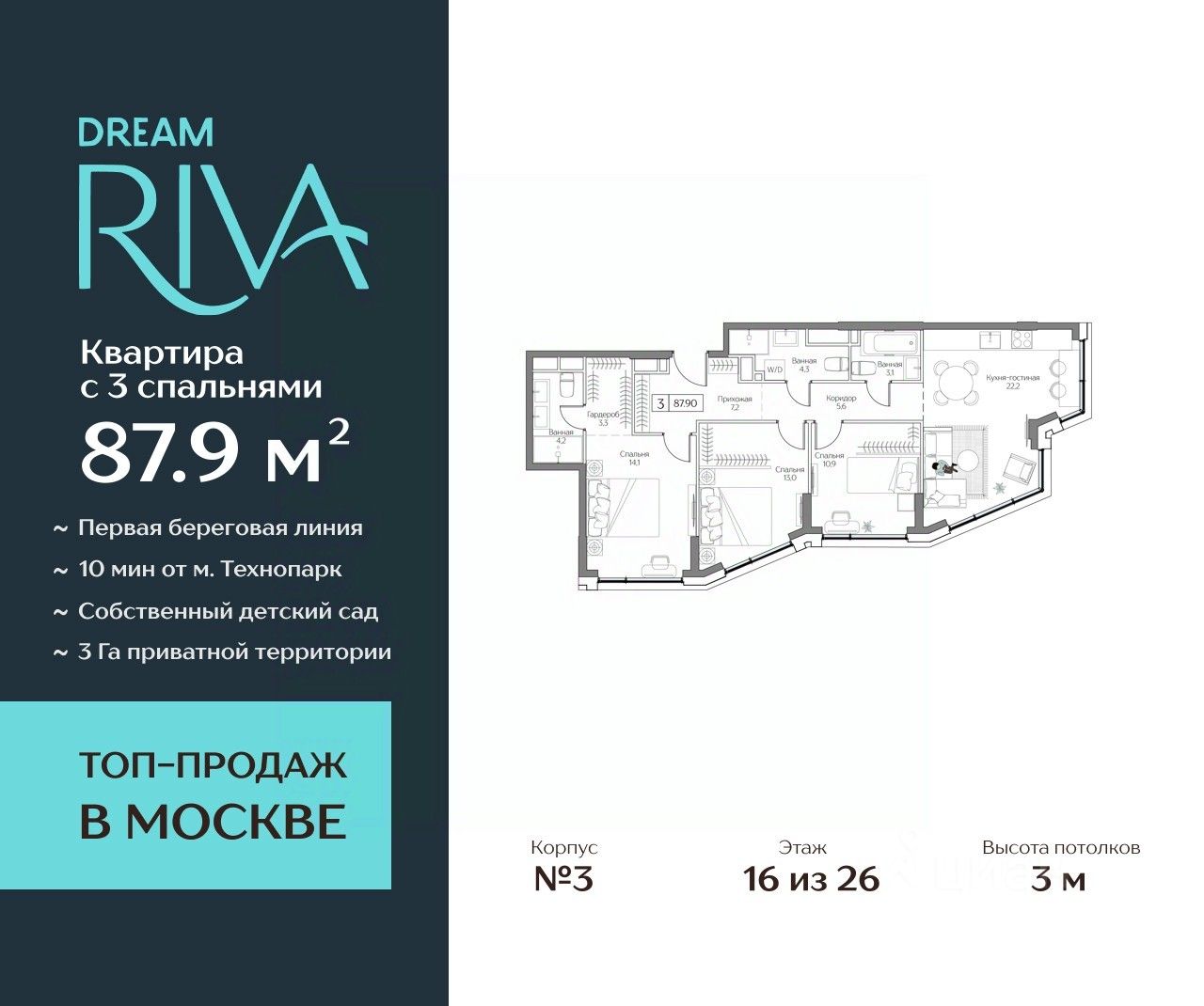 Общая площадь: 87.9 кв.м.