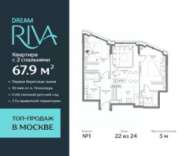 Продаётся Квартира с 2 спальнями квартира на 22 этаже 24-этажного дома (1 корпус).