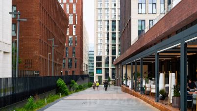 "Садовые кварталы" — городской ансамбль с собственным парком, бульварами и дворами без машин в Хамовниках. Архитектура держится на светлом камне, крупном остеклении и спокойных вертикалях; разные по высоте корпуса формируют чёткий городской рельеф. Входные группы напоминают лобби хорошей гостиницы: натуральные материалы, высокий потолок, стойки ресепшн и мягкие зоны. На территории работают клубные пространства и семейная инфраструктура, внутри квартала открыт World Class. Вечером дворики читаются камерно благодаря мягкой подсветке. Паркинг под корпусами связан с лобби лифтами.
