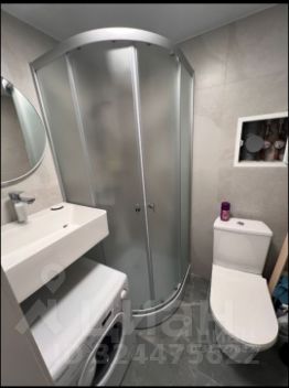 В санузле - душевая кабина ,стиральная машинка Candy.