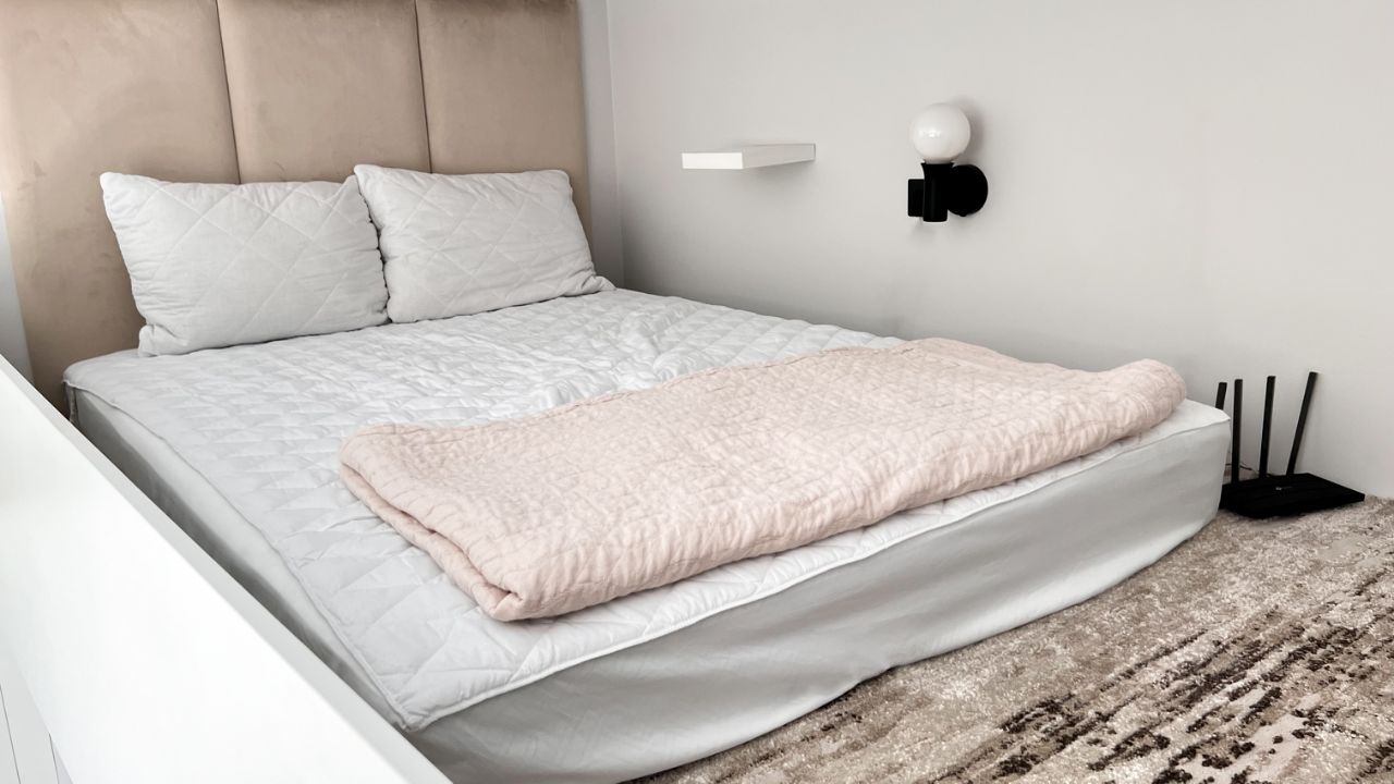 Уютная постель с новыми матрасом, одеялом, подушками и постельным бельем в подарок.
