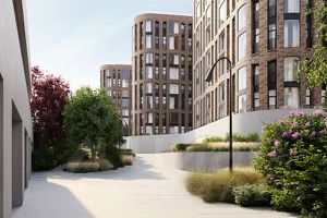 Непосредственная близость к воде гарантирует, что ничто и никогда не закроет эффектные виды на реку, а перепад высот между набережной и переулком формирует два разных ощущения от пространства. Архитектура отдаёт дань истории ажурным контуром и фактурой фасадов, во внешней отделке которых впервые в российской практике использованы греческий мрамор Silver Cloud и керамический кирпич ручной формовки от концерна Wienerberger AG.