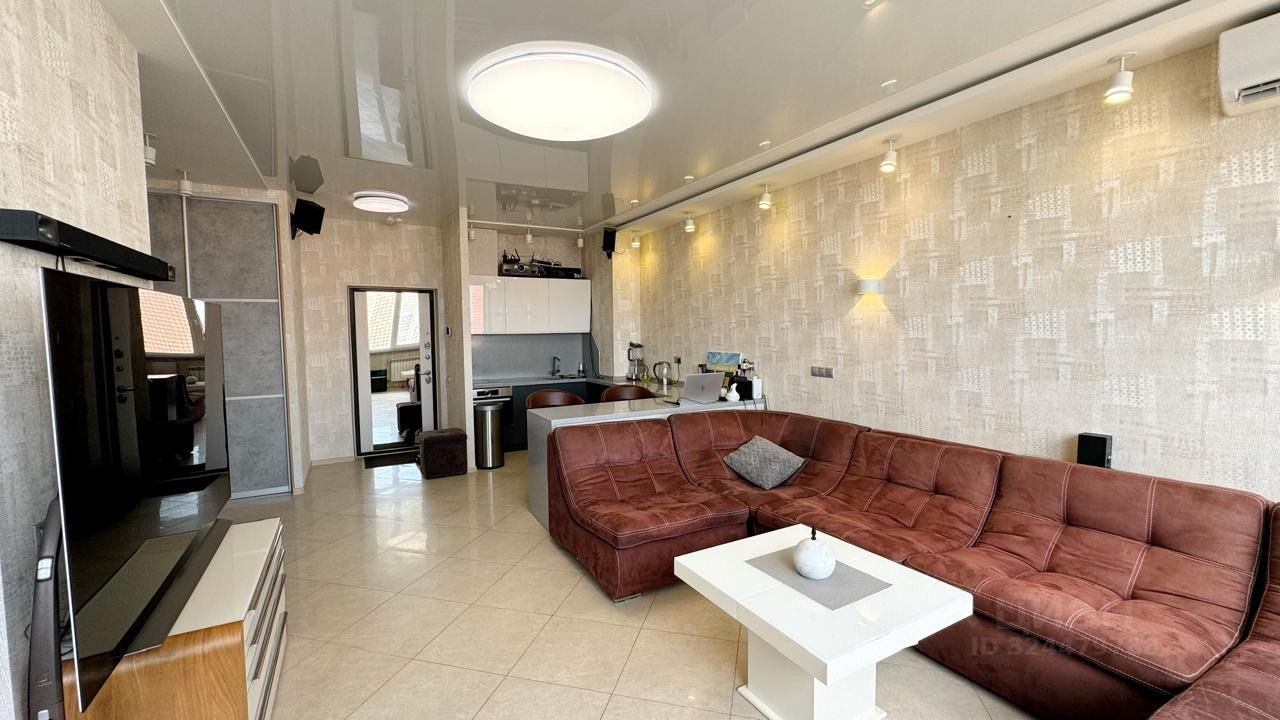 Кухня гостиная с большим диваном, и отдельно спрятанная спальня с гардеробной. Пол паркет, окна пвх, санузел в итальянской плитке ( душевая кабина ).